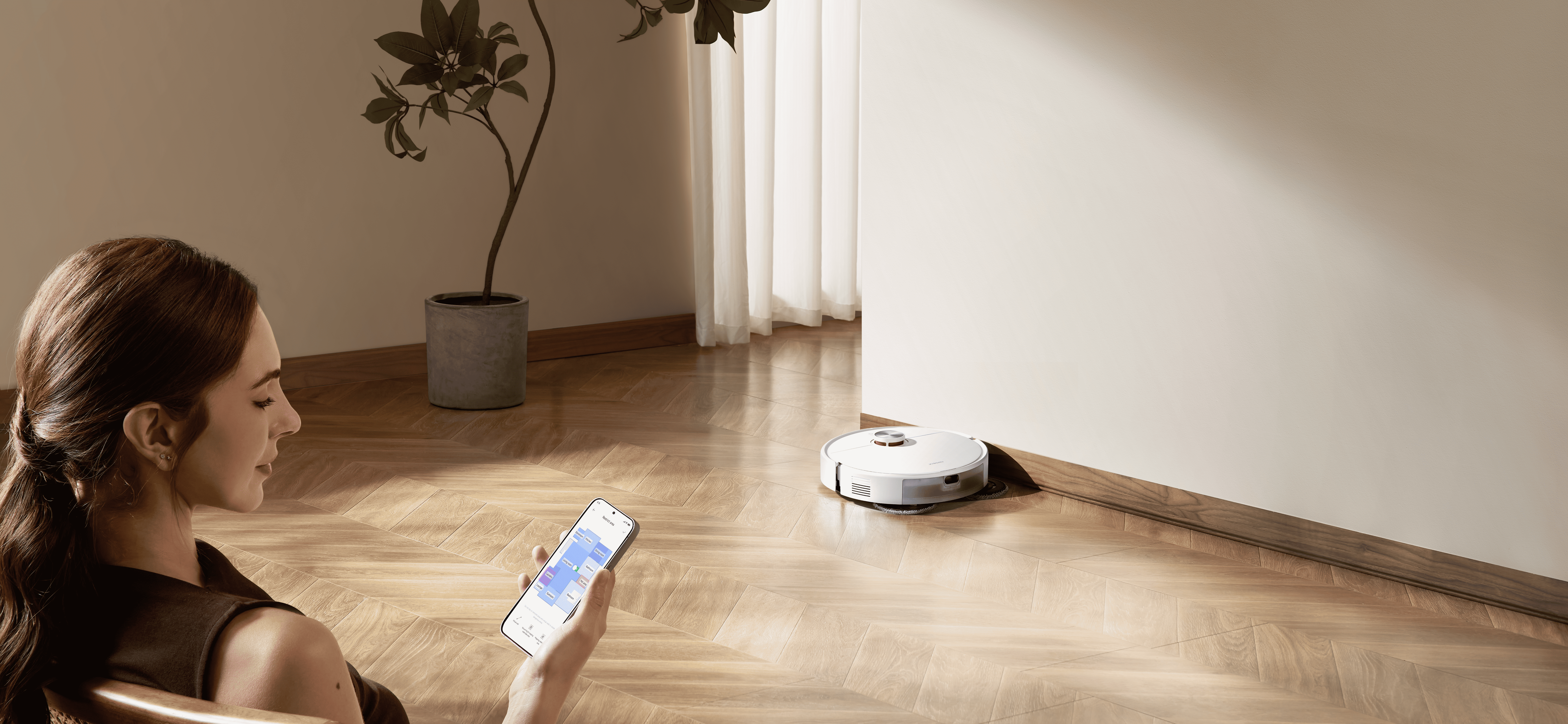 Модель поддерживает голосовое управление и интеграцию с умным домом. Также предусмотрены функции ограничения зон уборки, планирования по времени и тихого режима с уровнем шума всего 65 дБ, что позволяет использовать пылесос даже ночью.